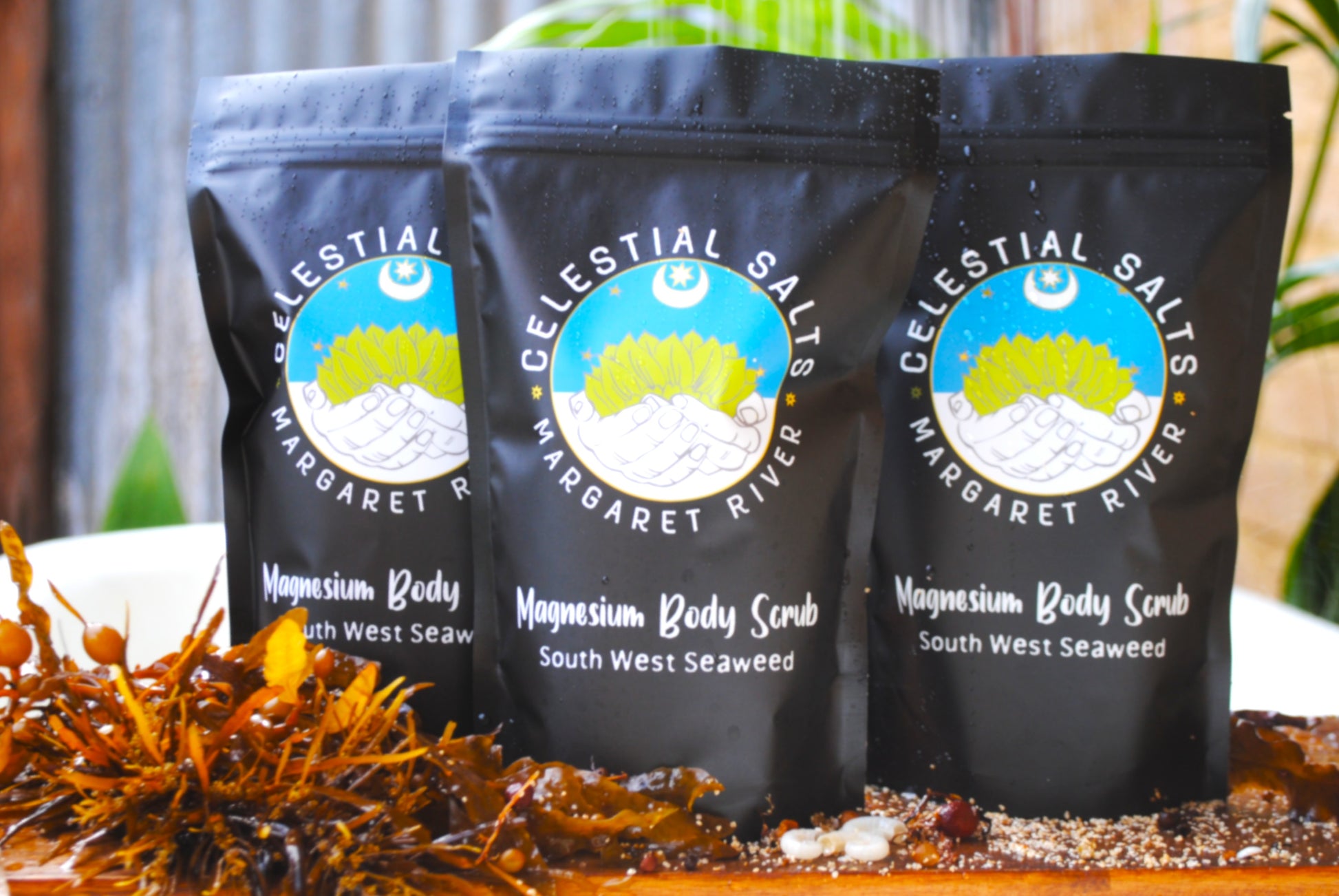 SOUTH WEST SEAWEED - Magnesium Sulphate and Chloride * Pure Coconut Oil (MCT) * Sweet Almond Oil * Essential oils of Lemon, Lime Juniper and French Lavender * LOVE * Certified Organic Seaweed powder * Blended and organically sourced Seaweed and Juniper Berries from South Western Australia.